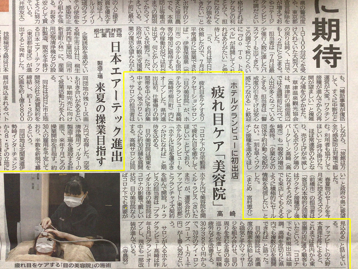 疲れ目をケアするリラクセーションサロン「目の美容院」が、ホテルグランビュー高崎(高崎市柳川町)内にオープンした。