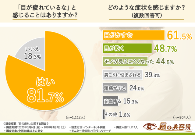 「目が疲れているな」と感じることはありますか?」と質問したところ、なんと8割以上の方が『はい(81.7%)』と回答しました。
