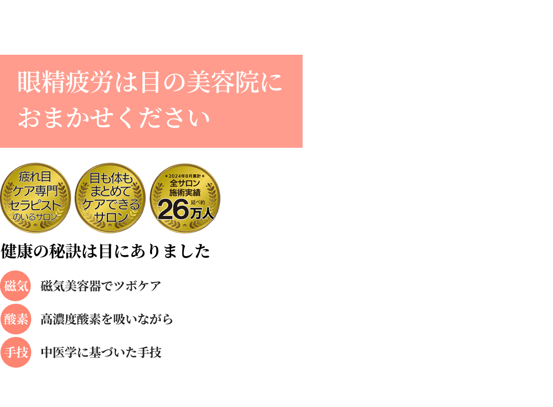中医学をベースに、身体全体の巡りの促進により疲れ目を癒す専門サロン。