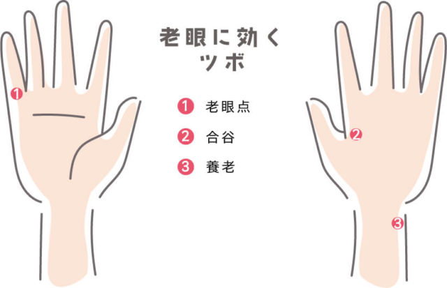 - 老眼に効くとされるツボを刺激する